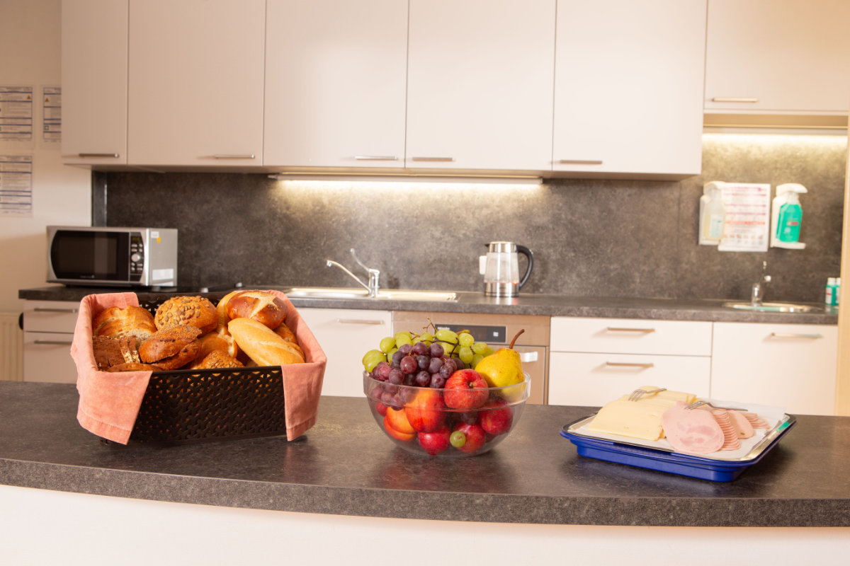 Ein leckeres und abwechslungsreiches Essen ist von großer Bedeutung für das Wohlbefinden eines jeden Menschen. Deshalb legen wir besonderen Wert auf die Zubereitung der Mahlzeiten. Unsere eigene Küche ermöglicht es uns, einen Teil der Speisen frisch zuzubereiten und auf die individuellen Wünsche und Bedürfnisse einzugehen. Zusätzlich wird uns auch Essen von externen Anbietern geliefert, das wir in unserer Küche sorgfältig für das Servieren vorbereiten. So stellen wir sicher, dass unsere Tagesgäste täglich drei abwechslungsreiche, hochwertige und wohlschmeckende Mahlzeiten genießen können, die dem Geschmack und den Bedürfnissen älterer Menschen angepasst sind. Unser „Frühstück vom Frühstückswagen“ kann jeden Tags aufs Neue individuell aus verschiedenen Brot- und Brötchensorten, Wurst- und Käseplatte, süßen und deftigen Aufstrichen, verschiedenen Joghurts und Quark zusammengestellt werden. Das regt zu Gesprächen an und die Entscheidungsfähigkeit unserer Tagesgäste wird dadurch gefördert.